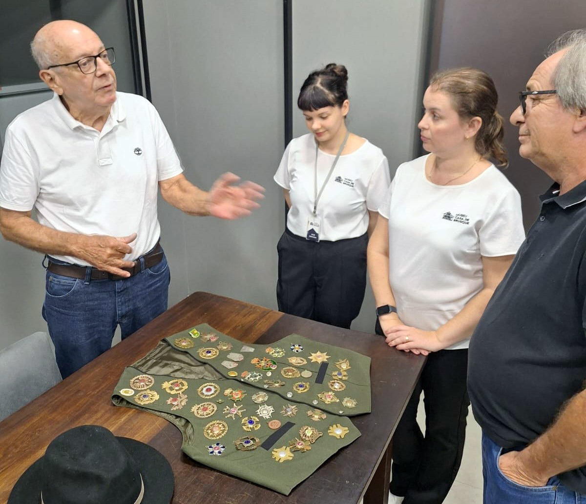 Foto 2: Ewaldo Ristow Filho (a esquerda) acompanhado da equipe do Museu Casa de Brusque.