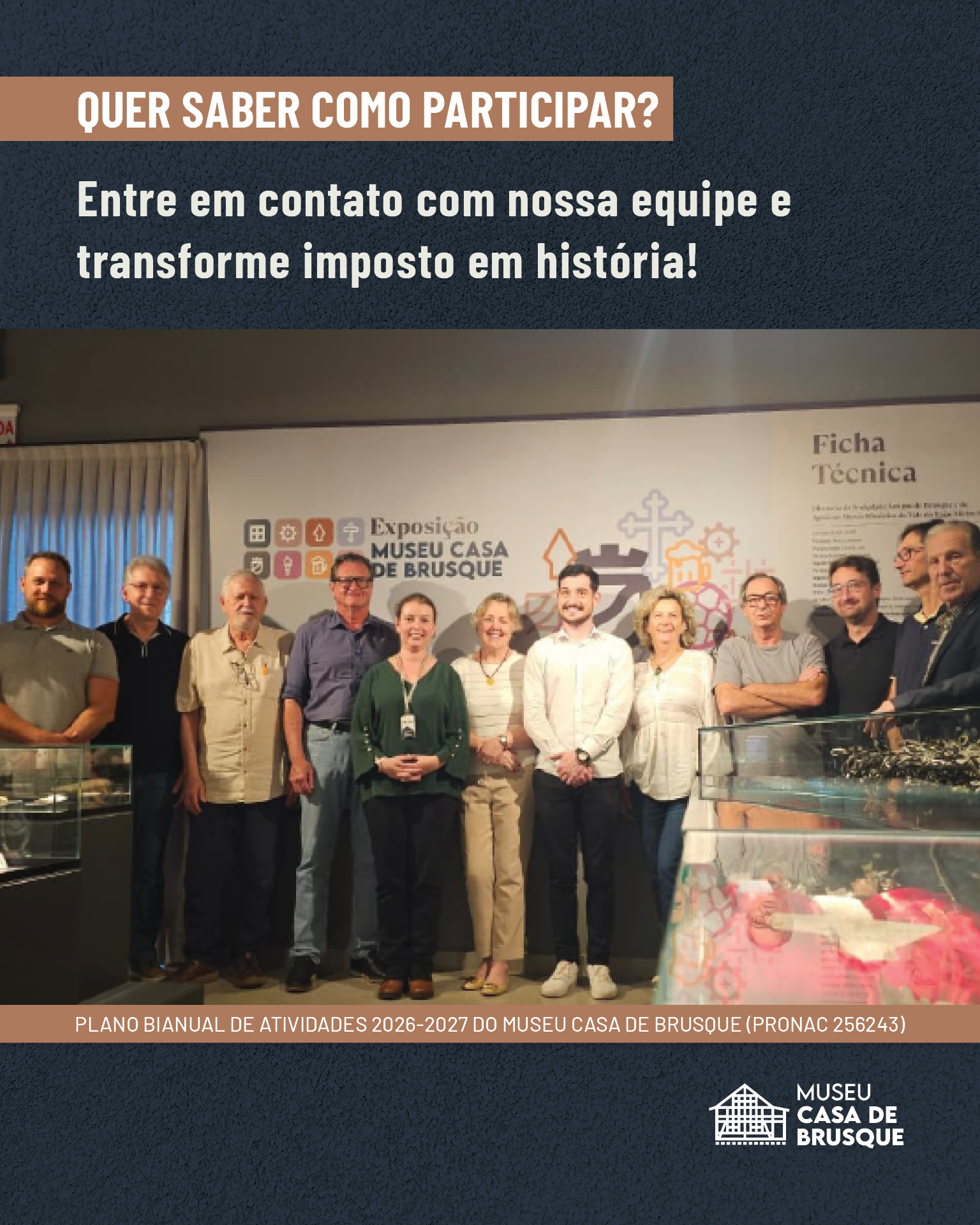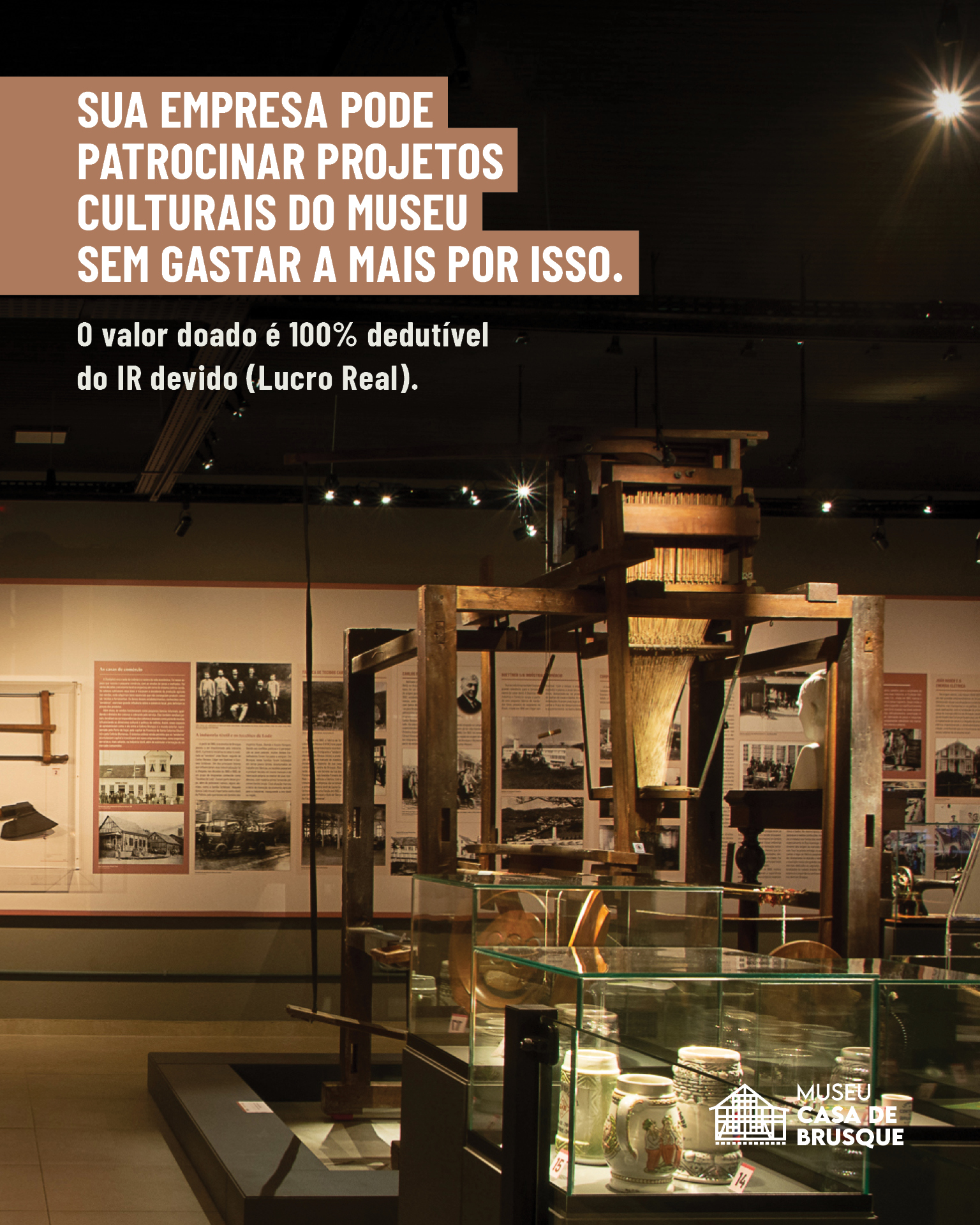 Com o “Plano Bianual de Atividades 2026-2027 do Museu Casa de Brusque” já aprovado via Lei Rouanet (PRONAC 256243), empresas tributadas no Lucro Real podem destinar até 4% do imposto devido e se tornarem patrocinadoras da história e da cultura local.